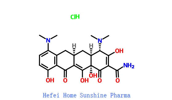 Αντιβιοτικό τετρακυκλίνης δεύτερης γενιάς αντιβακτηριακό.αξιοποιώντας τις δύο βασικές ομάδες διμεθυλαμινών που προτονίζονται και σχηματίζουν εύκολα αλάτι από διαλύματα υδροχλωρικού οξέοςΤο υδροχλωρίδιο είναι η προτιμώμενη σύνθεση για φαρμακευτικές εφαρμογές.Η μινοκυκλίνη παρουσιάζει ευρύ φάσμα αντιβακτηριακής και αντιπρωτοζωικής δράσης και δρα δεσμεύοντας στις υπομονάδες των ριβοσωμάτων 30S και 50S., εμποδίζοντας τη σύνθεση πρωτεϊνών.